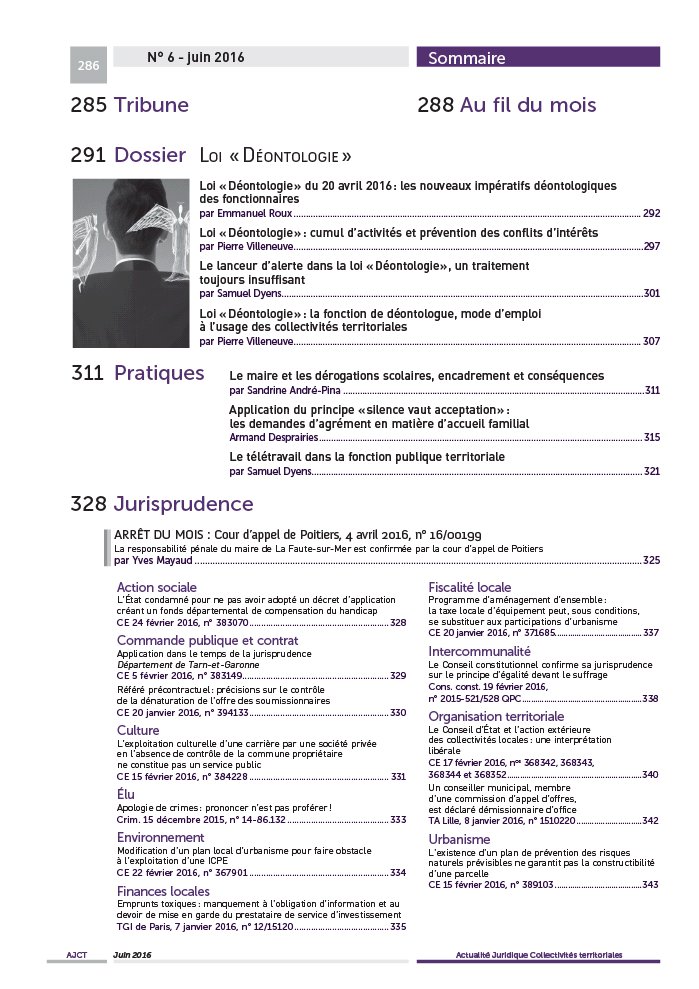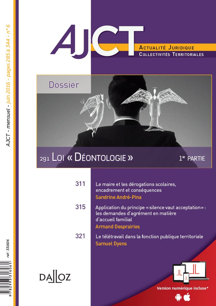 301 301 Loi « Déontologie » : la fonction de déontologue, mode d’emploi à l’usage des collectivités territoriales par Pierre Villeneuve par Pierre Villeneuve