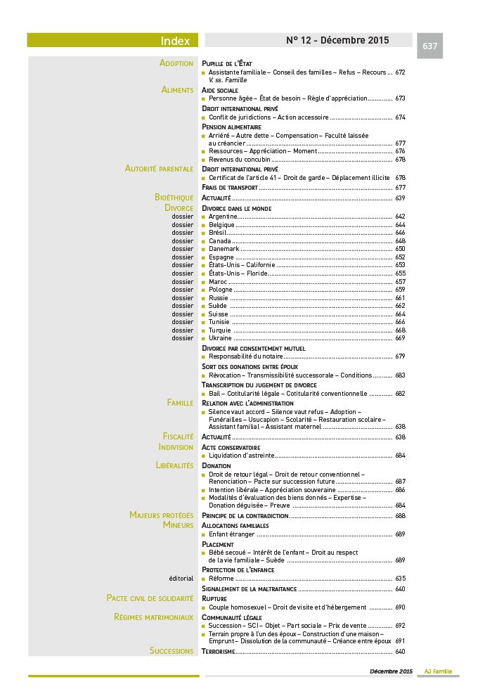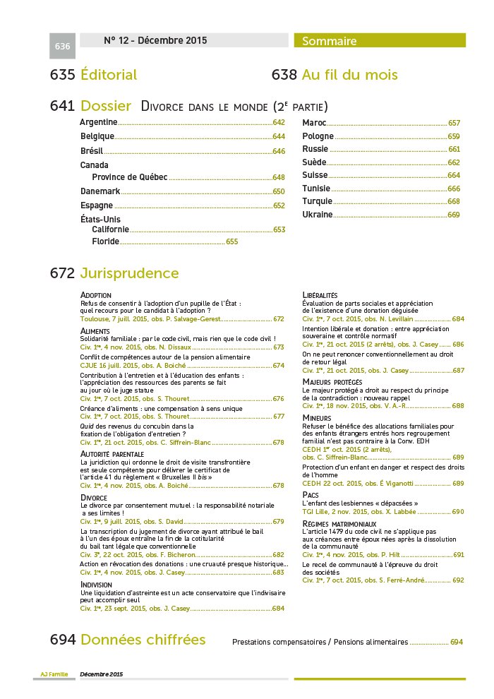 635 Éditorial 638 Au fil du mois 641 Dossier DIVORCE DANS LE MONDE ( 2E PARTIE) Argentine Argentine